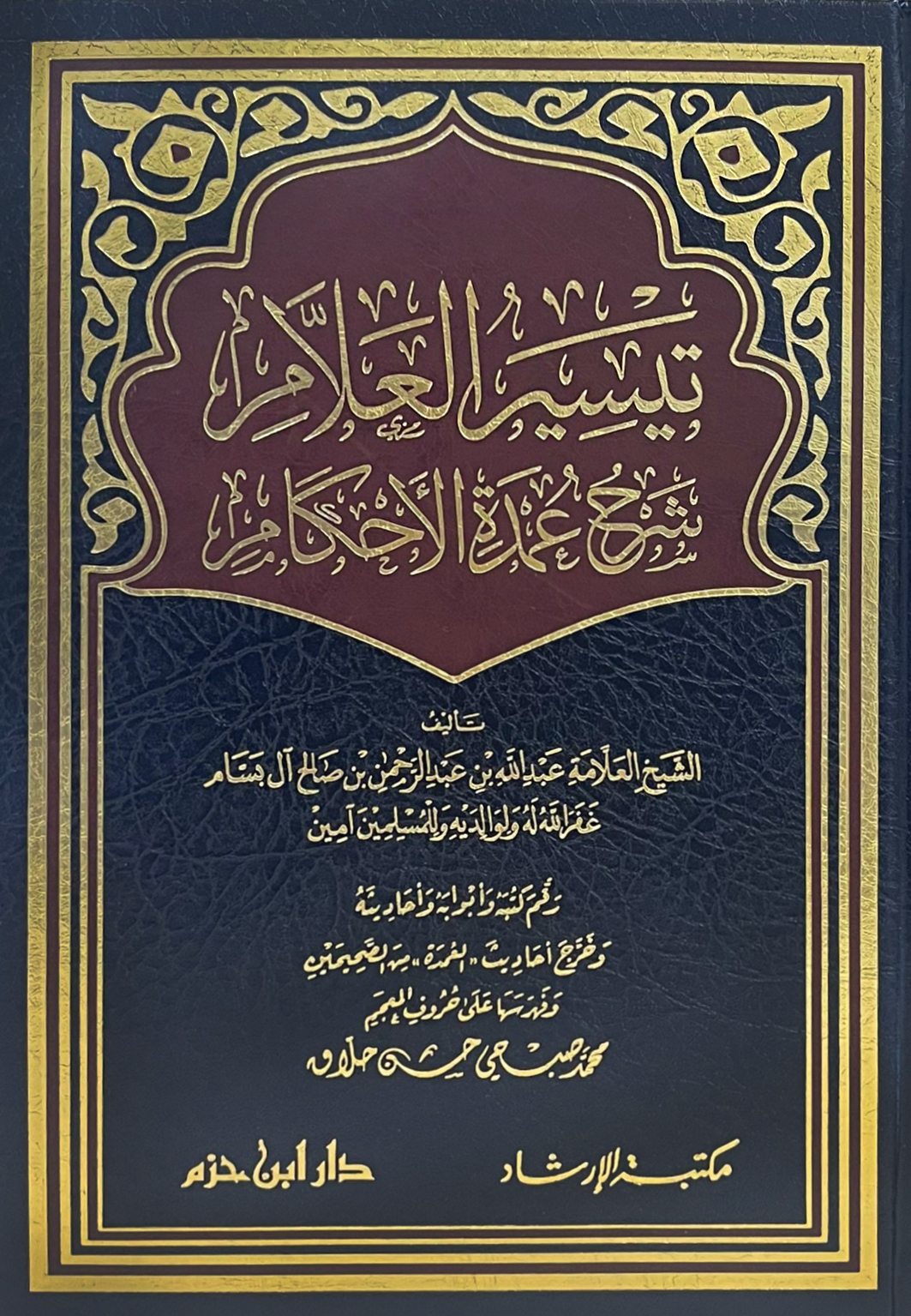 تيسير العلام شرح عمدة الأحكام : هذا الكتاب يحتوي على نخبة منتقاة من أصحّ آثار النبي – صلى الله عليه وسلم – اختارها المؤلف من صحيحي البخاري ومسلم، ورتبها على الأبواب الفقهية؛ لتكون عوناً على أخذ المسائل من أدلتها الصحيحة، ونظراً لأهمية الكتاب فقد قام فضيلة الشيخ عبد الله البسام – رحمه الله – ببشرحه شرحاً تميز بأسلوب سهل، قريب المأخذ، مفصل المواضيع.
